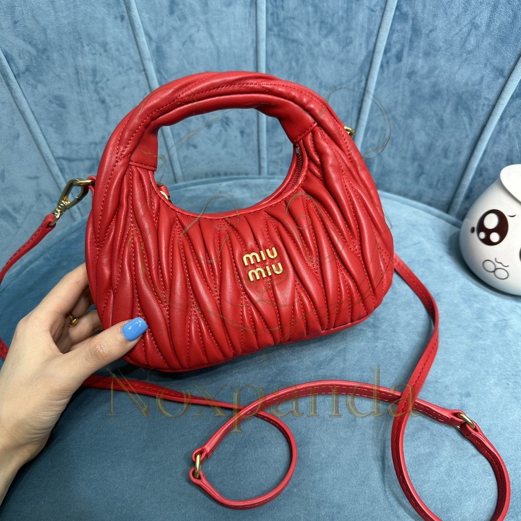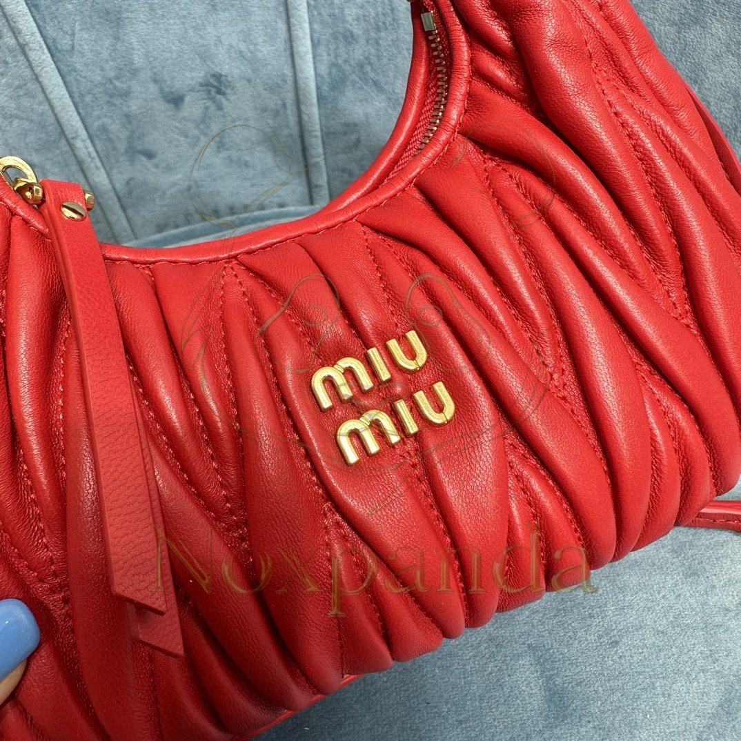 MIU MIU WANDER MATELASSÉ NAPPA LEATHER HOBO MINI BAG 5BP078 (17.5*14*5.5cm)